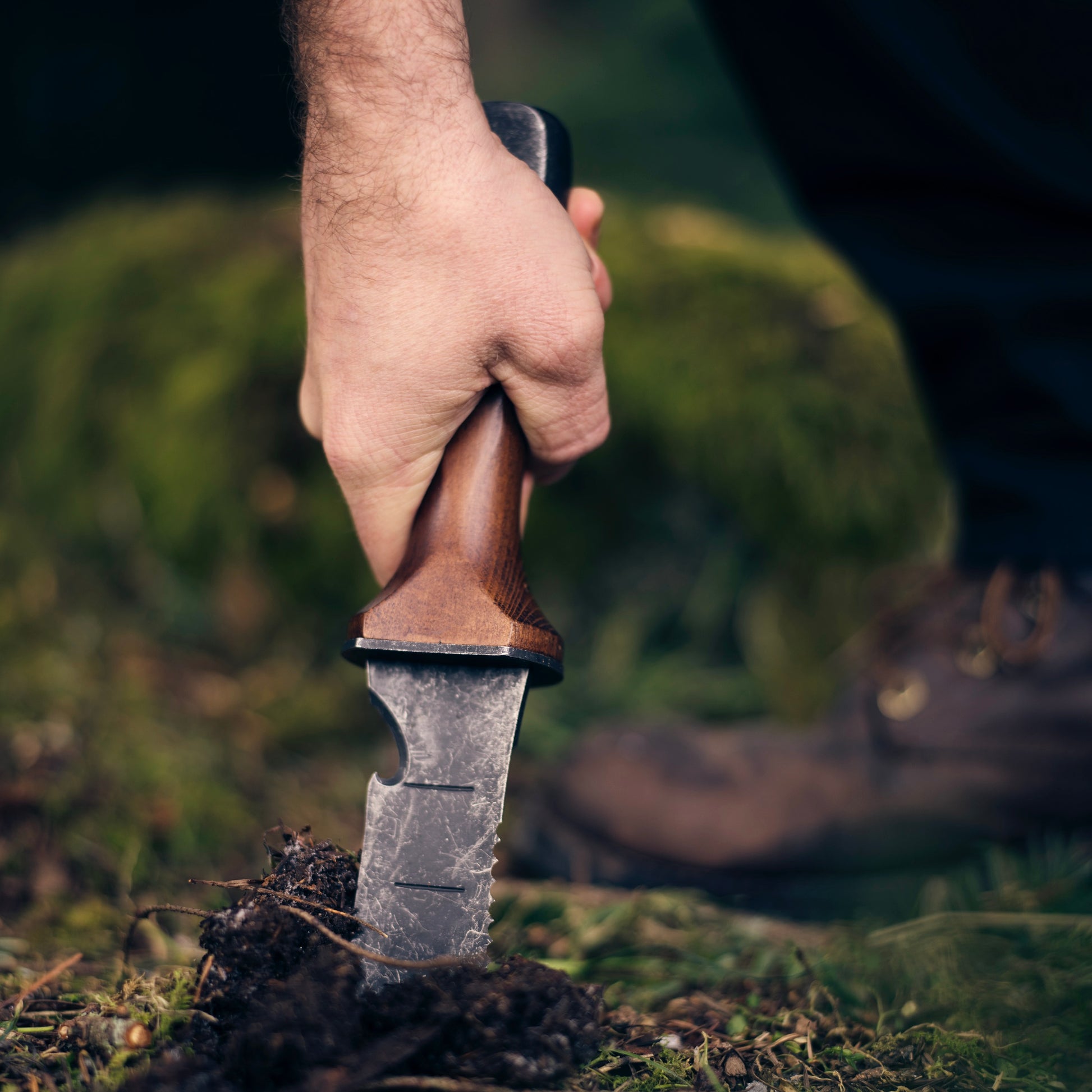 The Hori Hori's 6.75" double-edge blade is rust-resistant and heat-tempered. The handle is made of smooth and durable walnut.
